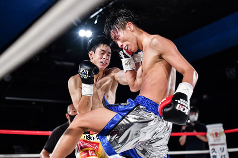 ・ムエタイのみ⾸相撲は 5 秒まで 可。(相手の蹴り足キャッチ後の前進は2歩まで)